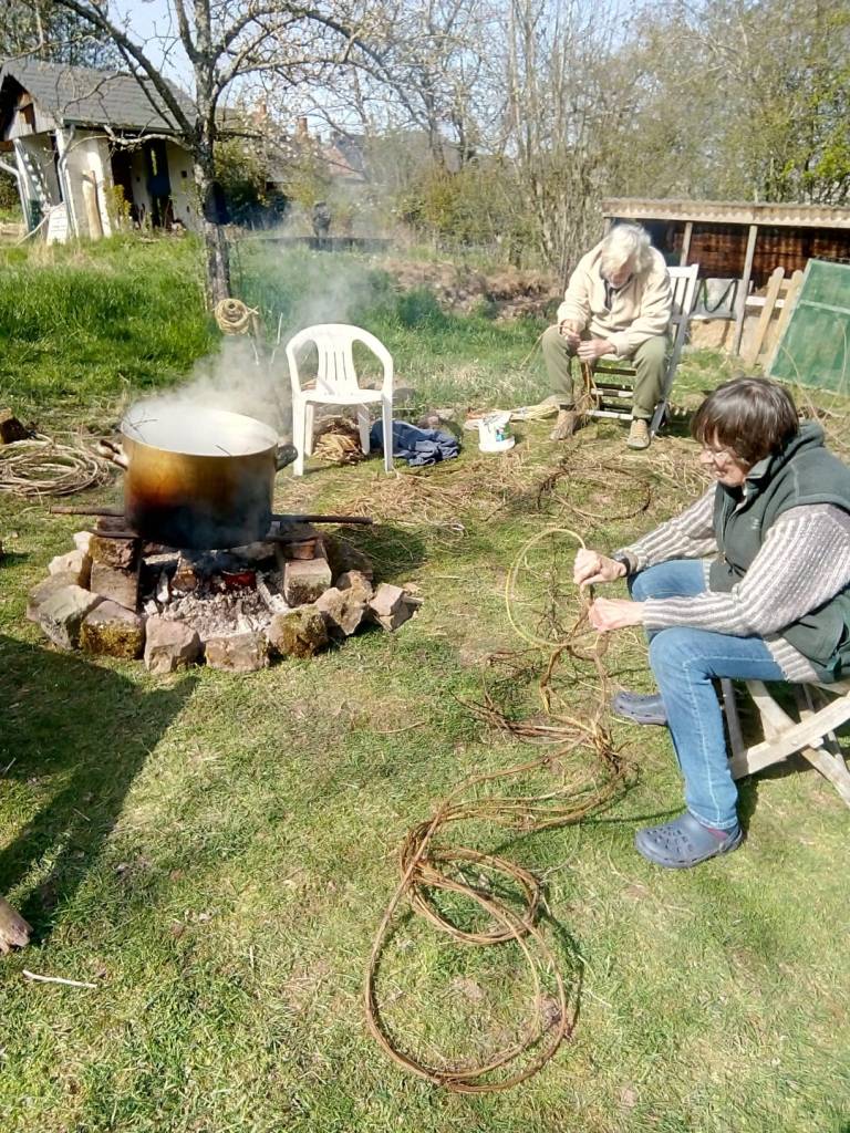 Mais en dehors du saule, il y a tant d’autres matériaux: l’écorce, le jonc, la massette, le noisetier, la clématite, le cornouiller, le rotin (liane d’Indonésie), les racines, le lierre… même le papier roulé en rouleaux… et tant d’autres, tant d’autres…